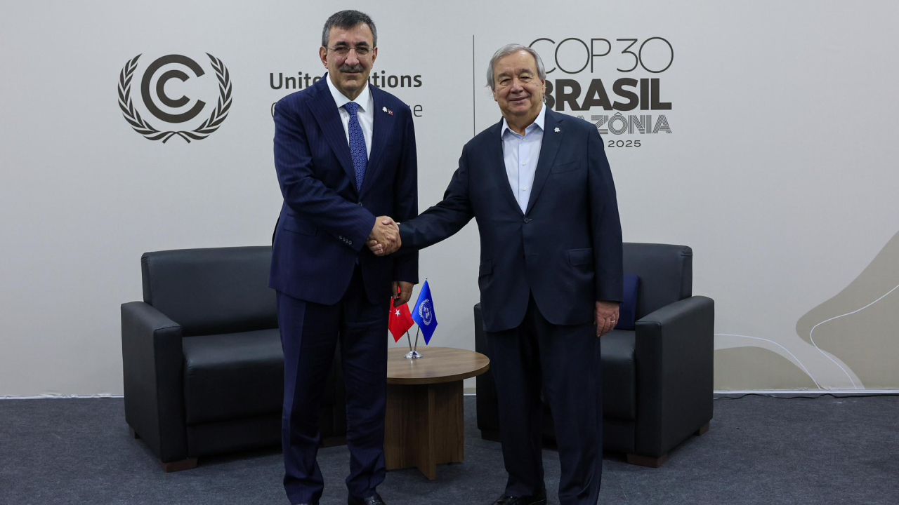 Cumhurbaşkanı Yardımcısı Cevdet Yılmaz, Brezilya’nın Belem kentinde, BM Genel Sekreteri Antonio Guterres ile bir araya geldi.