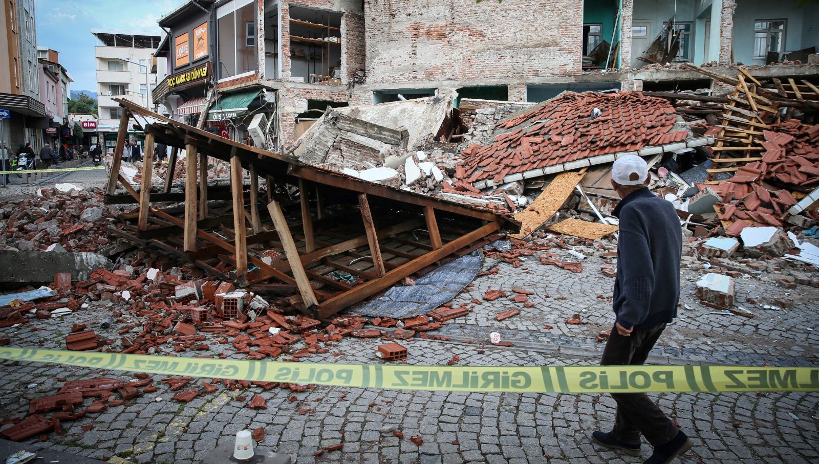 Balıkesir'in Sındırgı ilçesinde iki gün önce meydana gelen 6,1 büyüklüğündeki depremin ardından enkaz kaldırma ve hasar tespit çalışmaları devam ediyor.