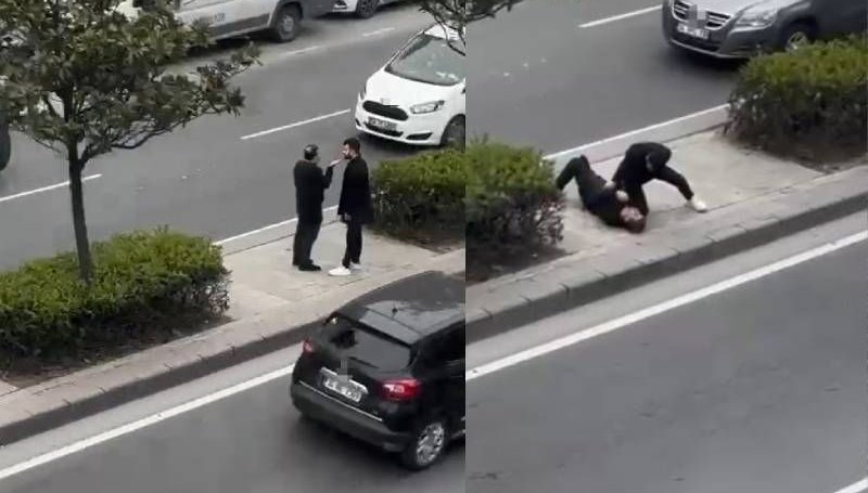 Babasını tek yumrukla bayıltan kişinin, o anları vatandaşların cep telefonu kamerasıyla saniye saniye kaydedildi.